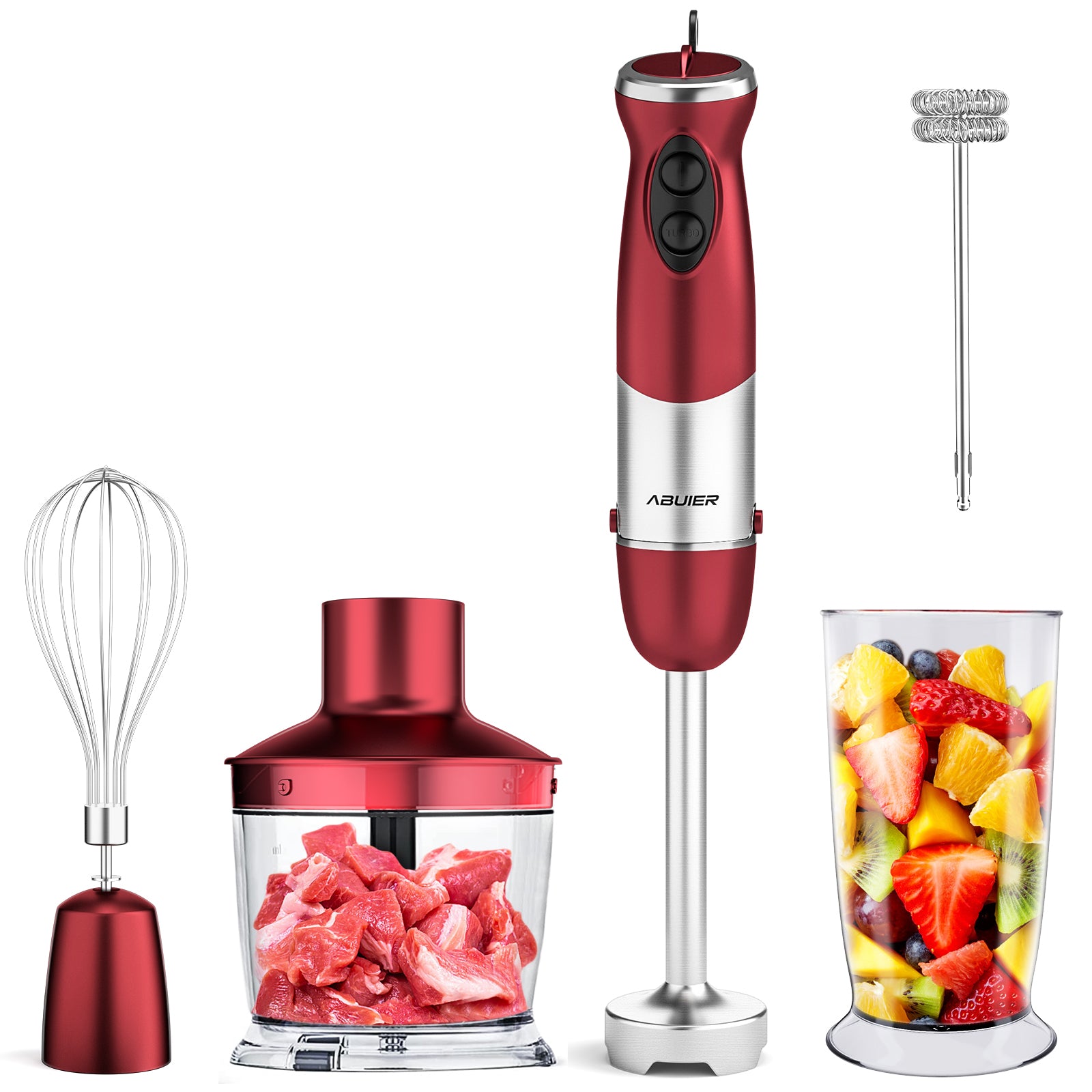 "【🍸無限の汎用性、1台7役で大満足!】 Abluerのお得でかわいいハンドブレンダーセットが新登場!高パワーで「切る」「つぶす」「混ぜる」「きざむ」「砕く」「泡立てる」「ミルク泡立て」のすべてをこれ一台で実現しました。1台で6役をこなすAbluerハンドブレンダーは、面倒な料理の下ごしらえから離乳食づくりまで、幅広いシーンで活躍してくれるので、忙しい毎日でも簡単&スピーディーにお料理が仕上がります。ハンドブレンダー本体はもちろん、アタッチメントを使えば下ごしらえが素早く簡単にできるだけでなく、料理の可能性を無限に広げてくれます。
